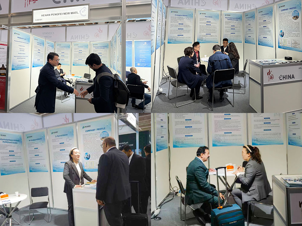 为期三天的展会中,河南鹏飞的展位始终人流如织。我们带来的PVP系列等高性能药用辅料,以其稳定的品质和广泛的应用前景,成为了众多国际客户关注的焦点。来自世界各地的新老朋友们驻足洽谈,与我们进行了深入交流,并建立了宝贵的联系。